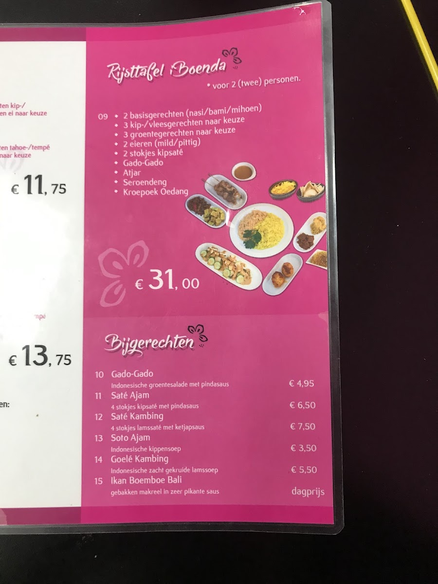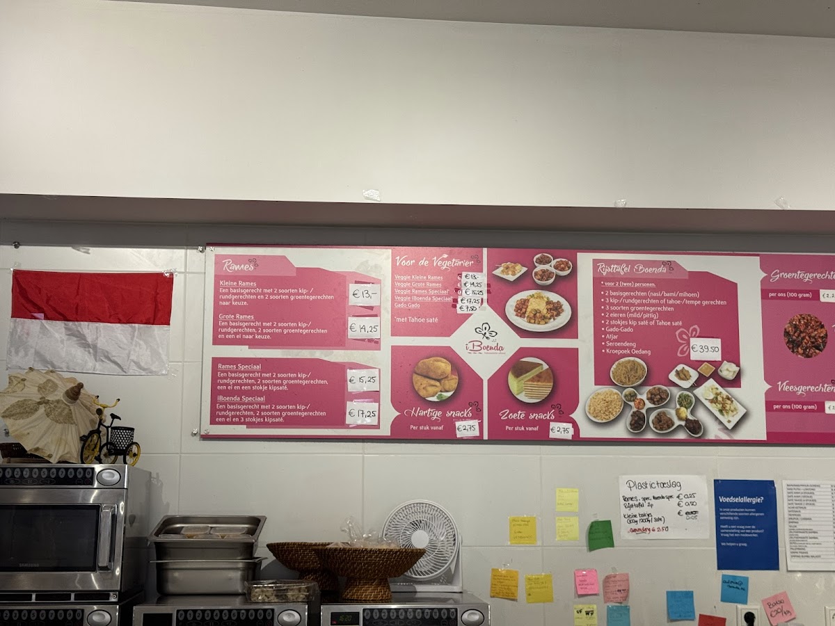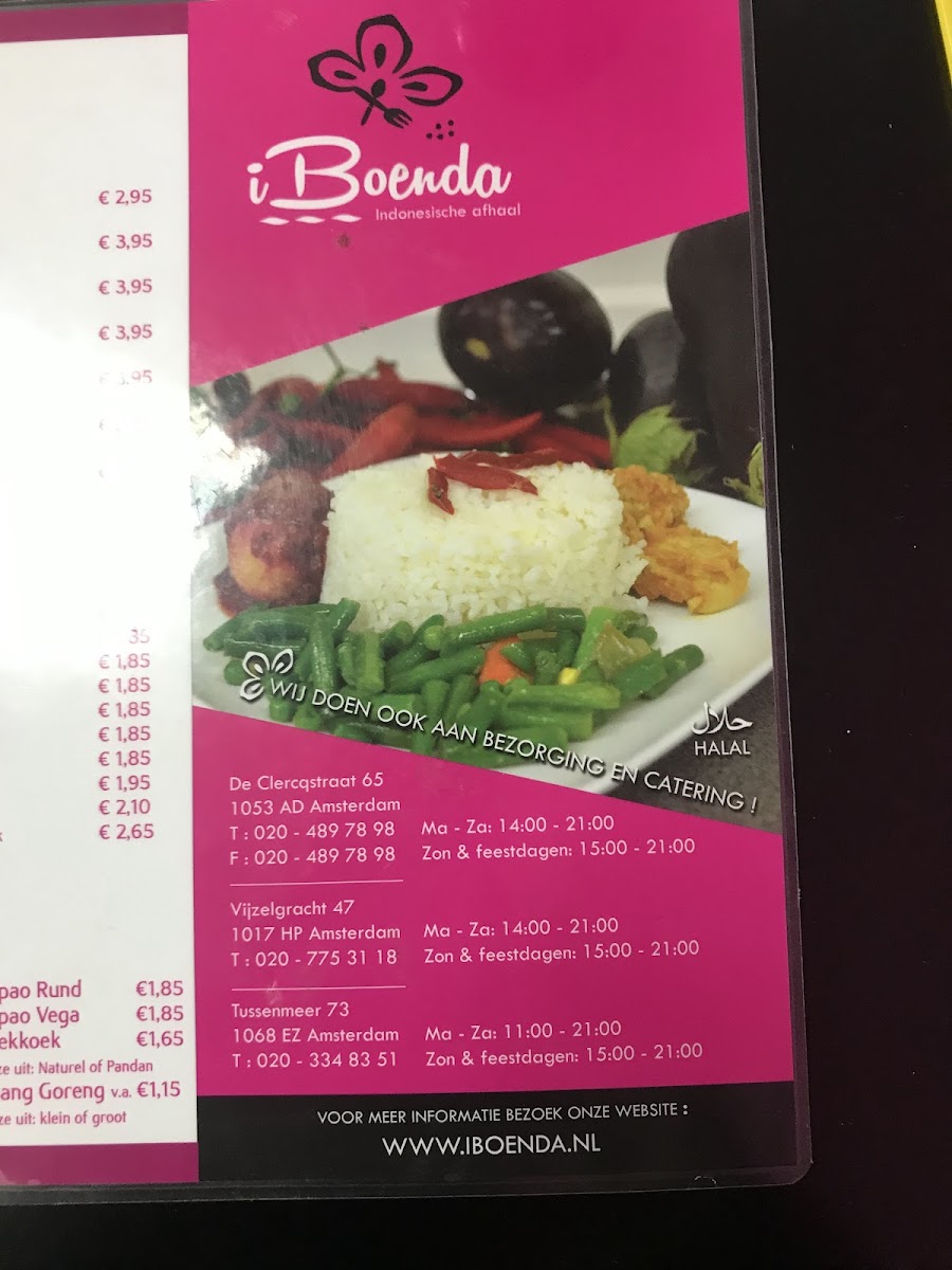 The menu at Iboenda Amsterdam offers a delightful and flavorful selection of dishes that capture the essence of Indonesian cuisine. Among the standout items, Sambal takes center stage, providing a spicy kick that pairs perfectly with any dish, adding depth and heat to the meal. The Saté is another must-try, featuring skewers of grilled meat served with a rich and savory peanut sauce, making it a perfect choice for those seeking a balanced blend of savory and sweet. For a unique twist, the Saté Jam Jam offers a more adventurous option, combining traditional satay with an unexpected jam element, creating a deliciously sweet contrast to the savory flavors. These dishes not only reflect the authentic Indonesian flavors but also showcase the creativity of the kitchen. Whether you’re a fan of spice or a lover of grilled meats, Iboenda's menu delivers a memorable dining experience with each dish.